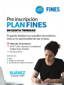 Municipio Preinscripción al Plan FINES en Coronel Suárez: convocatoria abierta Leer más... 23/02/2026
