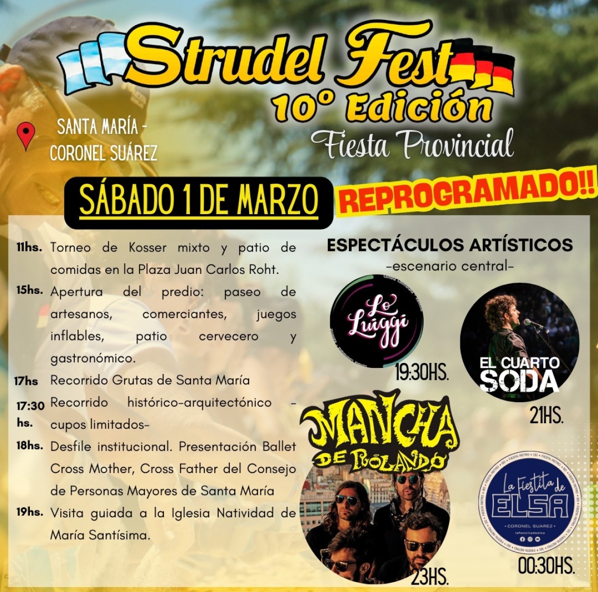 Reprogramación Strudel Fest La Mancha de Rolando se presenta este sábado. Por cuestiones climáticas el show de La Mancha de Rolando se realizara? este sábado 1º de marzo a las 23 hs.