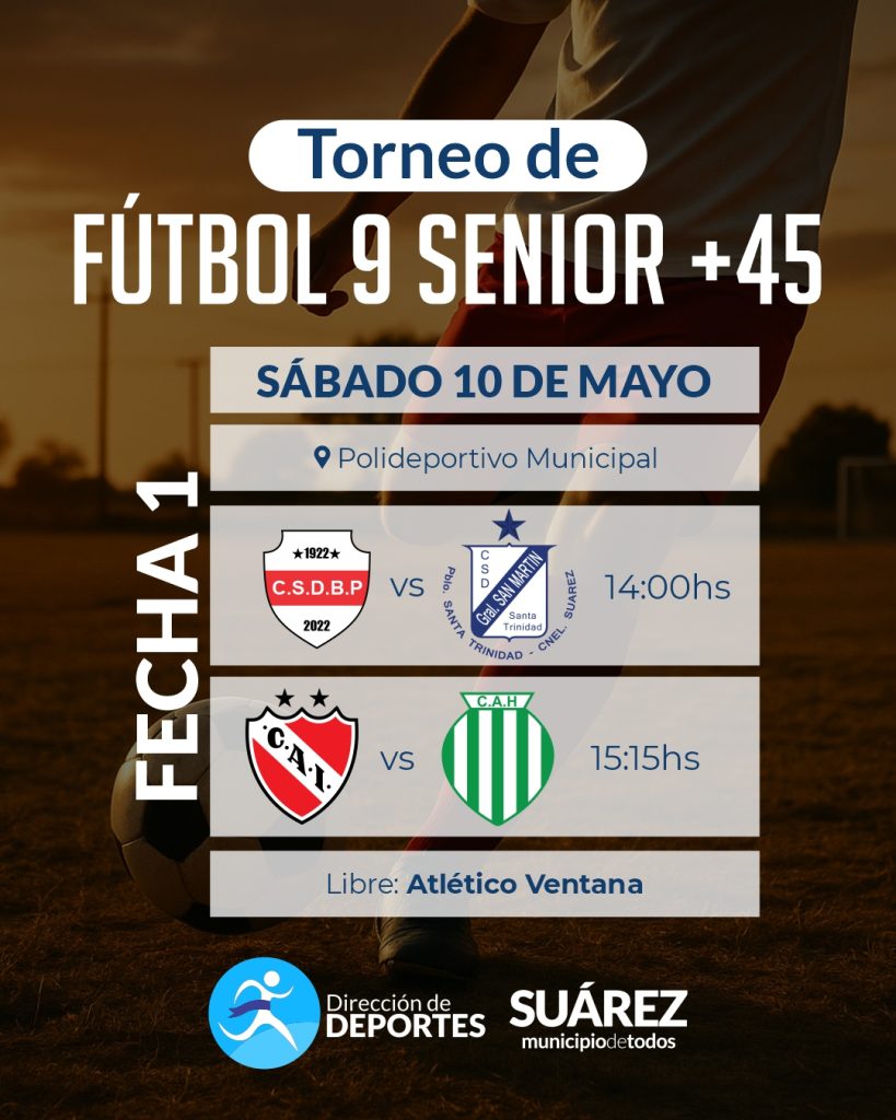 Vuelve al polideportivo municipal el Torneo de Fútbol 9 Senior+45. Este sábado 10 de mayo comienza el Torneo de Fútbol 9 Senior +45 que organiza como es habitual cada año, la dirección de Deportes, en el polideportivo municipal abierto de la ciudad.