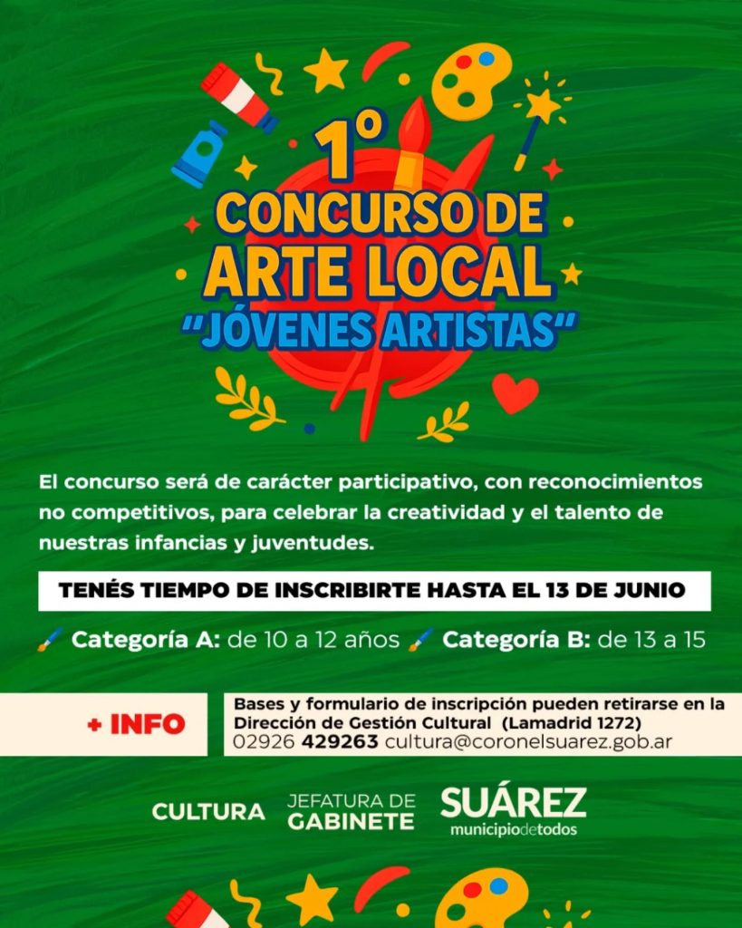 Si tenés entre 10 y 15 años, vivís en el distrito de Coronel Suárez y te apasiona la pintura, ¡ésta es tu oportunidad para expresarte con arte!