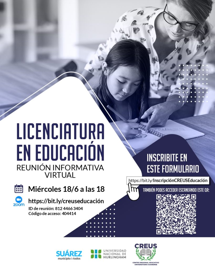 CREUS sigue creciendo: llega la 3° cohorte de la Licenciatura en Educación con la UNAHUR. ¿Sos docente o técnico/a superior con formación pedagógica y querés seguir formándote? ¡Tenemos una gran oportunidad para vos! Gracias al convenio entre el Municipio de Coronel Suárez y la Universidad Nacional de Hurlingham (UNAHUR), lanzamos la tercera cohorte de la Licenciatura en Educación (a distancia)