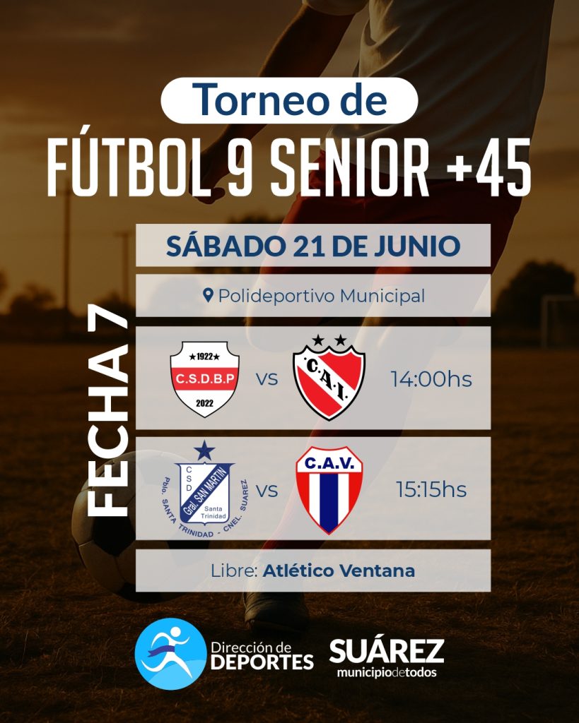 Torneo Senior 9 +45: Resultados de la 6° fecha y programación de la próxima jornada. Se disputó la sexta fecha del Torneo Senior 9 +45, organizado por la Dirección de Deportes del Municipio de Coronel Suárez.