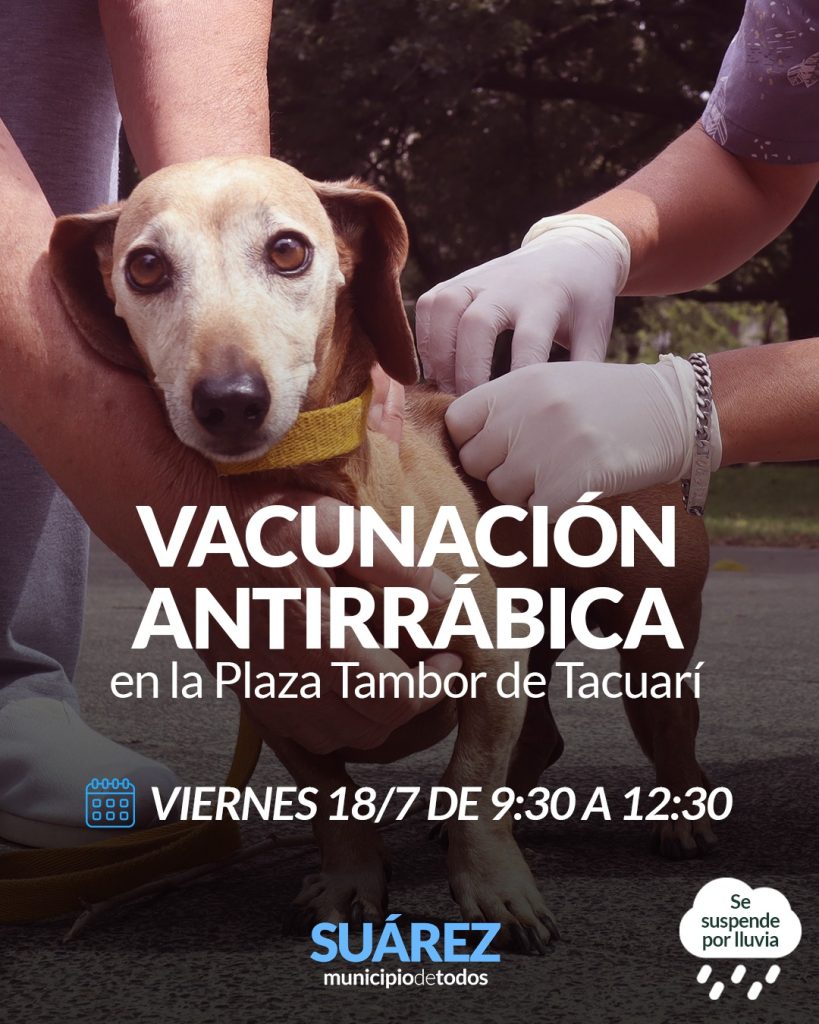 El equipo de profesionales desarrollará el viernes 18 de julio, una nueva jornada de vacunación antirrábica gratuita para perros y gatos en la Plaza Tambor de Tacuarí. El operativo se realizará de 9:30 a 12:30 hs.
