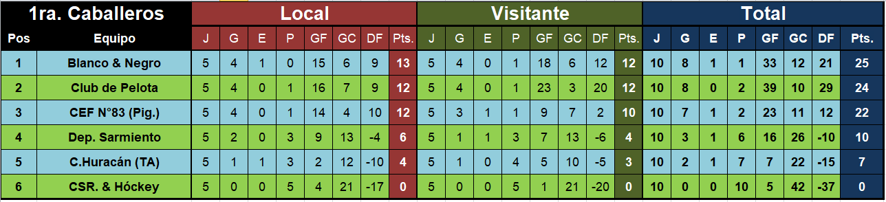 Volvió la actividad en la rama masculina con una nueva fecha del hóckey de primera división en la rama masculina y en el ámbito de la Federación de Hóckey del Sudoeste con la puesta en juego de la décima fecha y tres nuevos partidos que nos dejaron el triunfo de Blanco & Negro de visitante para alcanzar la punta en soledad y despegándose del CEF pigüense que cayó de local ante Club de Pelota lo que le permitió a los pringlenses ubicarse como único escolta de los albinegros a tan solo un punto. Sigue la batalla entre los tres de arriba y que promete cinco fechas de aqui al final muy atractivas y en lo que será la tercera ronda de partidos. El balance de lo acontecido con resultados, posiciones y próxima fecha, aqui.
