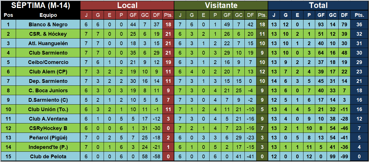 Atl. Huanguelén 7 – CSR & Hockey B 0