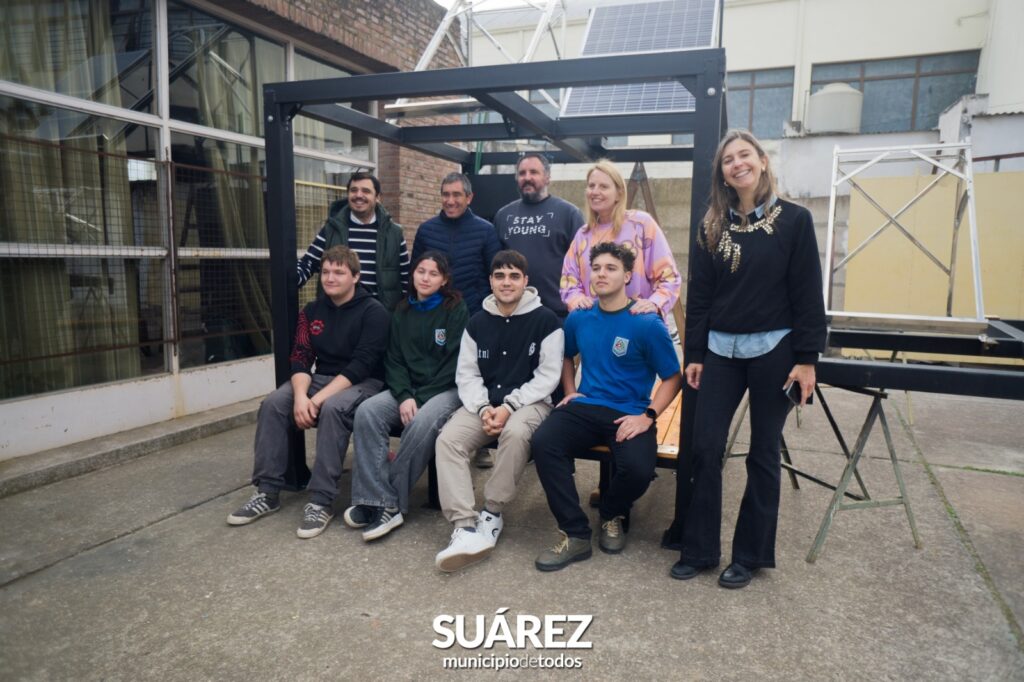 Durante la recorrida, Mauro estuvo acompañado por la directora del establecimiento, Silvina Schulmeister, el profesor a cargo del proyecto, Miguel López, la directora de Educación Anahí Barreneche y los estudiantes que llevan adelante la construcción, junto al secretario de Obras Públicas, ingeniero Mario Abelardo con quienes analizaron los espacios donde se colocarán los puntos sustentables.