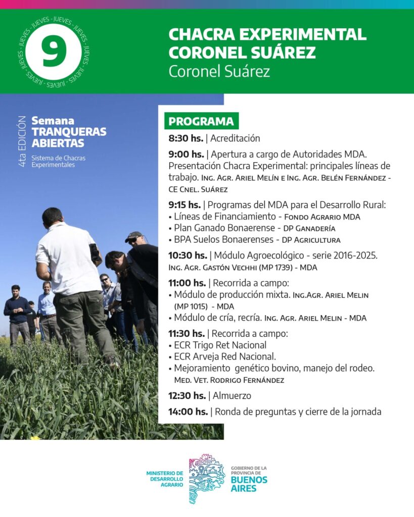 Semana de Tranqueras Abiertas: cuarta edición de las jornadas de chacra experimentales, del lunes 6 al jueves 9 de octubre. Conocé todas las actividades que vamos a compartir en las distintas Chacras MDA Inscribite en el formulario web: https://tinyurl.com/tranquerasabiertas2025 ¡Los y las esperamos!