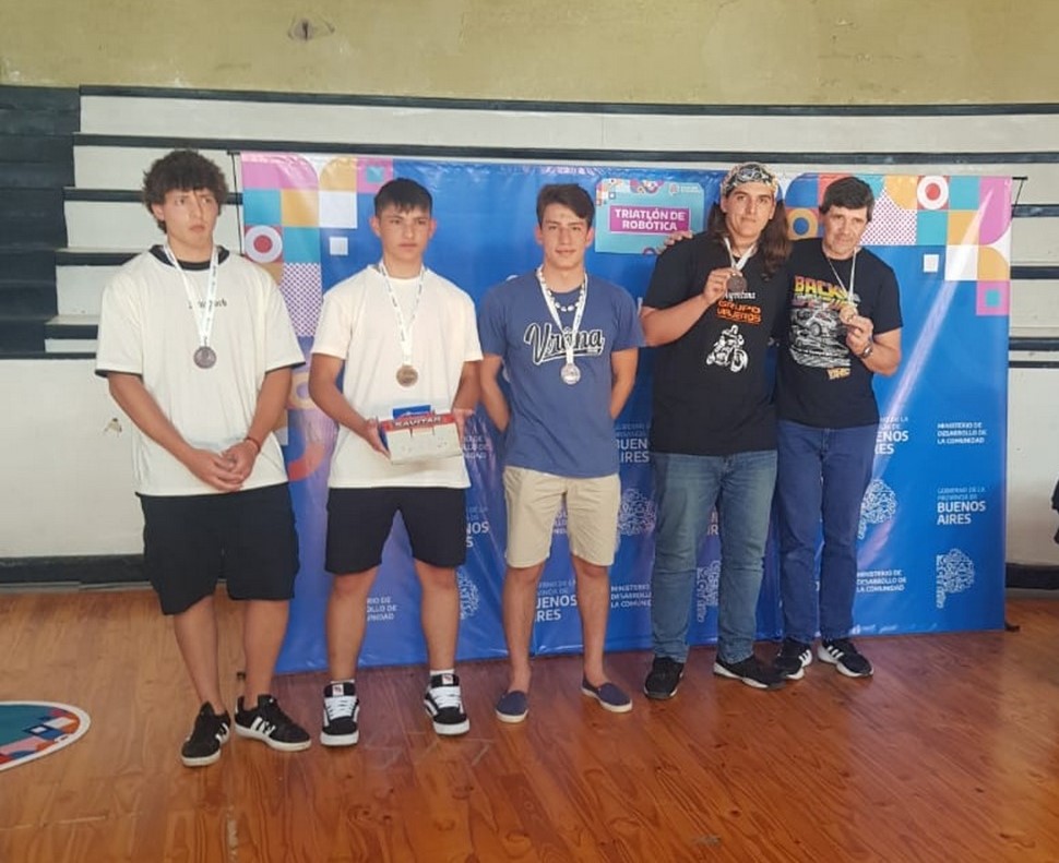 Robótica: equipo integrado por Mateo Cano Dos Santos, Mateo Susic, Tomás Eberle, Alexis Gelinger y Prof. Darío Lindner.