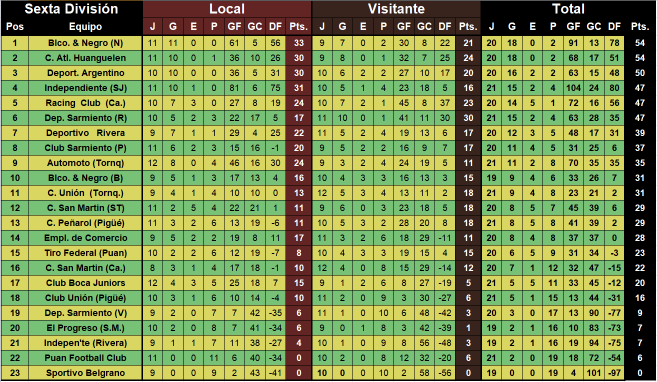 Deport. Argentino – Blco. & Negro (N), en 6ta., 7ma. y 8va. división.