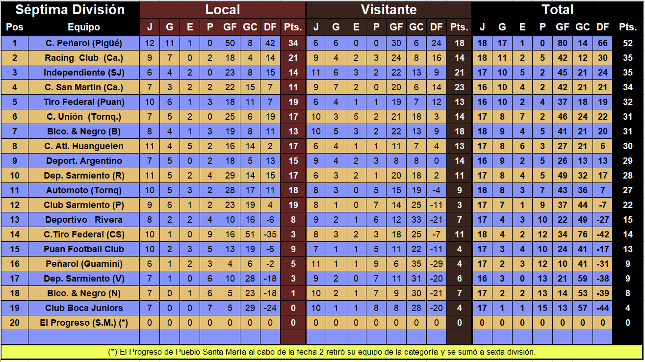 Dep. Sarmiento (V) – Puan Football Club, en 6ta., 7ma. y 8va. división.