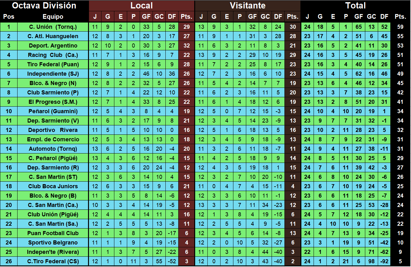 Indepen’te (Rivera) – C. Atl. Huanguelen, en 5ta., 6ta. y 8va. división.
