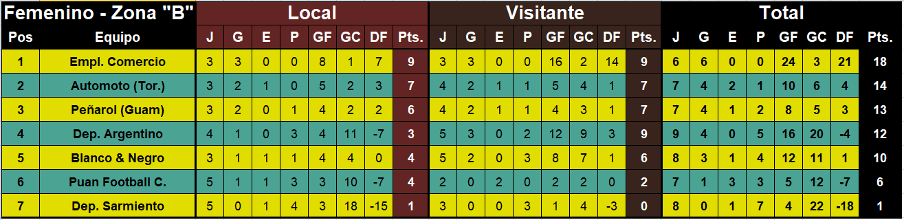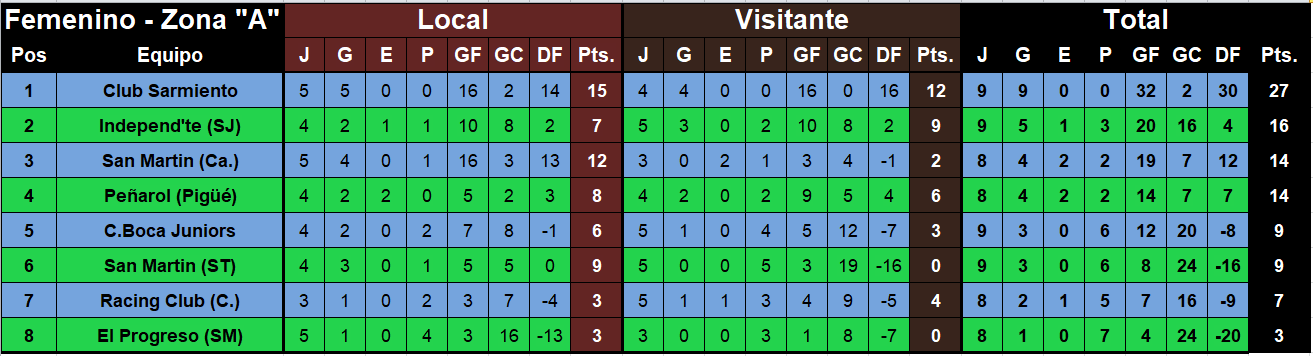 San Martín (Ca) 3 (Natalia Espinoza, Florencia García, Mara Gómez) – Independ’te (SJ) 0 (-).