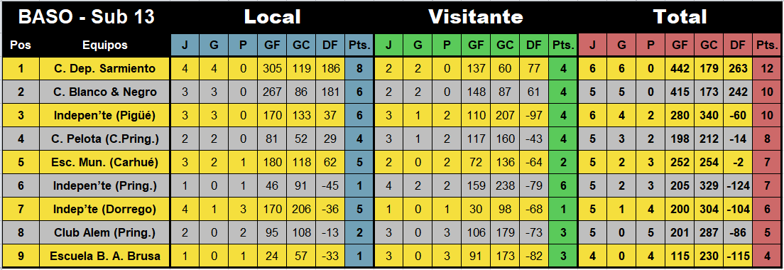 C. Blanco & Negro – C. Pelota (C.Pring.), en sub-13 y sub-15.