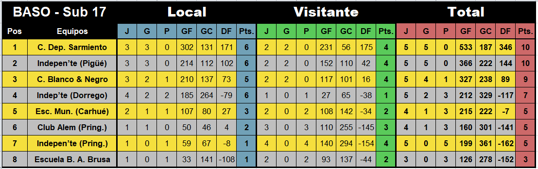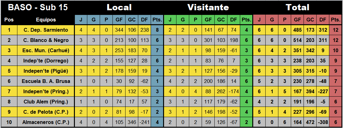 Indepen’te (Pring.) – Esc. Mun. (Carhué), en sub-13, sub-15 y sub-17.