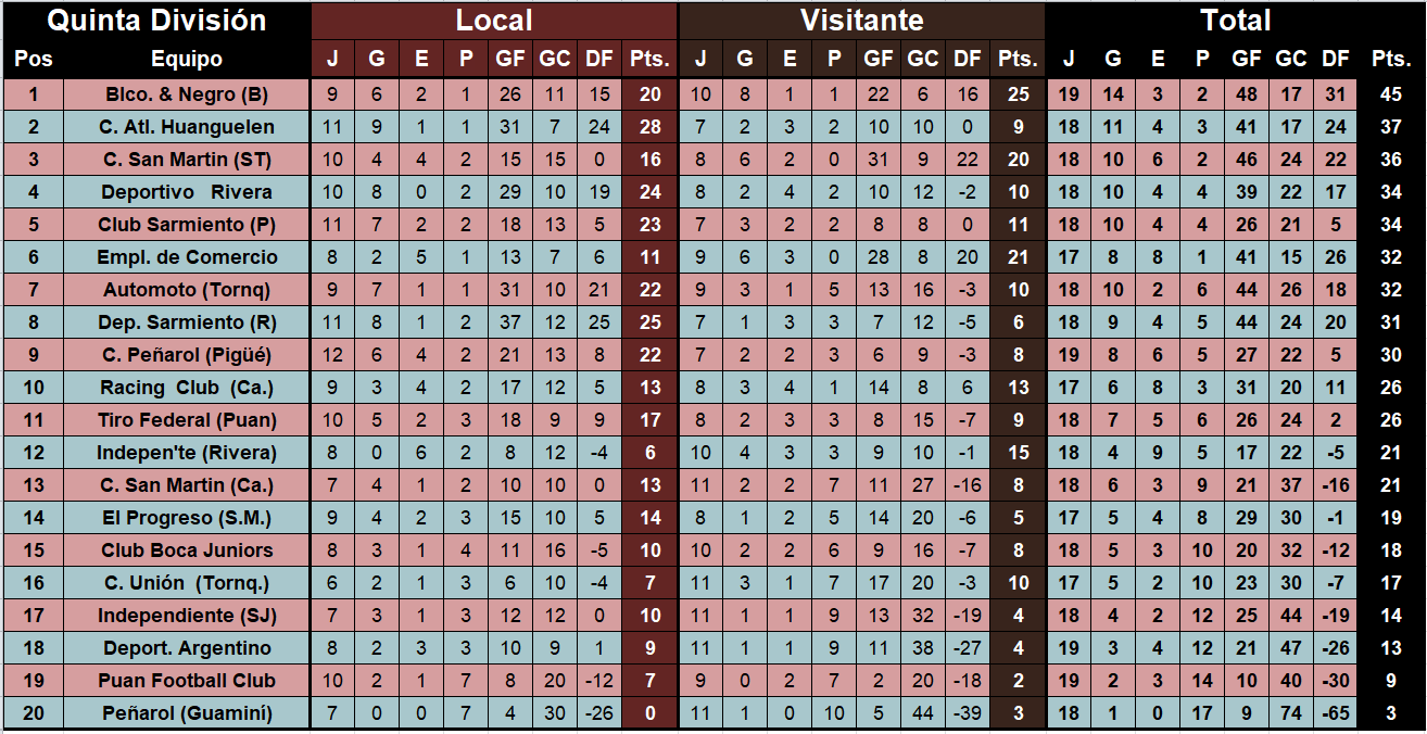 Tiro Federal (Puan) – Dep. Sarmiento (R), en 5ta., 6ta., 7ma. y 8va. división.