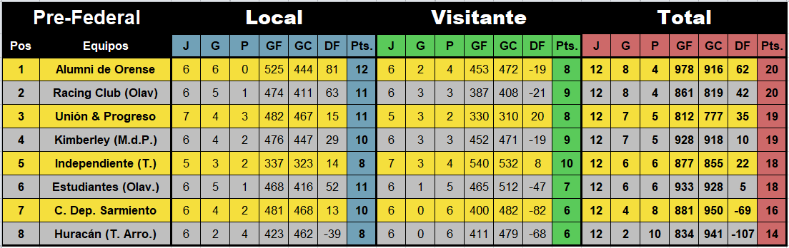 Se completó en las últimas horas de la tarde del sábado con la visita de Deportivo Sarmiento a Unión & Progreso de Tandil, la 12da. fecha del certamen Pre-federal de básquet en el único grupo que compone la zona sur.