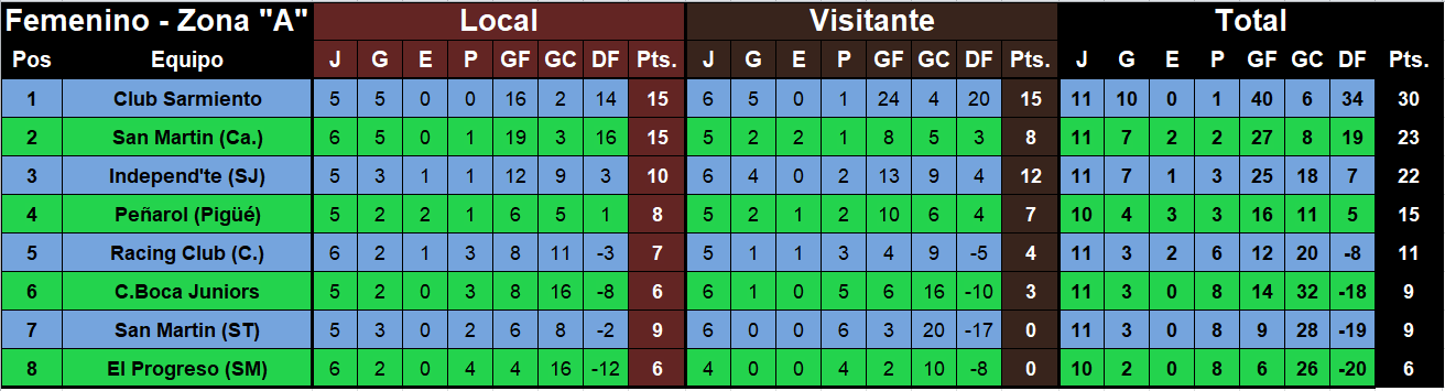 San Martín (Ca) 3 (Nicole Diaz, Mara Gómez, Natalia Espinoza) – Club Sarmiento 0 (-).