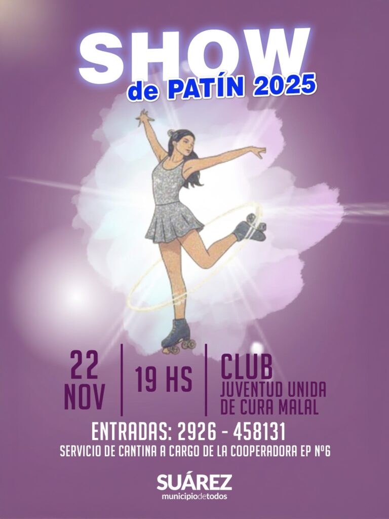 Show de patín 2025 en Cura Malal el 22 de noviembre a las 19 hs. en el Club Juventud Unida. Una noche llena de brillo, talento y emoción con la participación de pareja invitada de tango y folclore, solista de ritmo urbano y latino y clubes invitados de la región