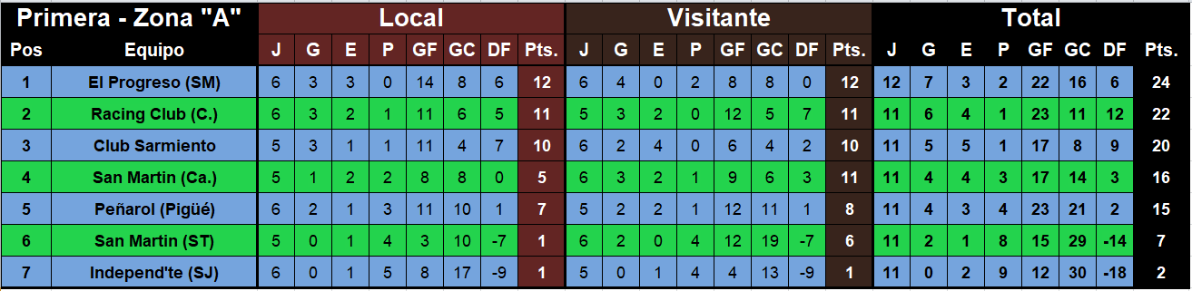 Racing Club (C.) 5 (Emilio Romero 3, Alejo Martinez, Astor Cruzvar) – San Martín (ST) 2 (Pablo Pimentel 2).