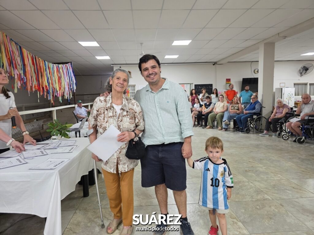 Mauro Moccero acompañó la entrega de certificados a personas mayores que participaron de los talleres municipales que se dictaron en el Hogar de Ancianos. En una emotiva jornada se realizó en la tarde el miércoles 10 de diciembre, la entrega de certificados a las personas mayores que este año participaron de los talleres municipales, en su mayoría residentes del Hogar de Ancianos “Domingo Goñi”.