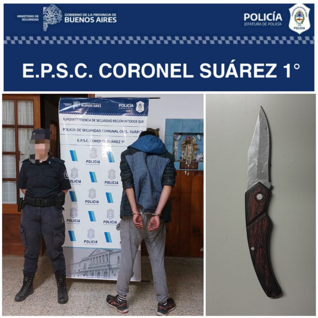 Se procedió al secuestro del arma blanca utilizada en el hecho dando intervención al la U.F.I.J. N.º 15, del Departamento Judicial Bahía Blanca. El aprehendido permanece alojado en los calabozos a disposición de la fiscalia interviniente.