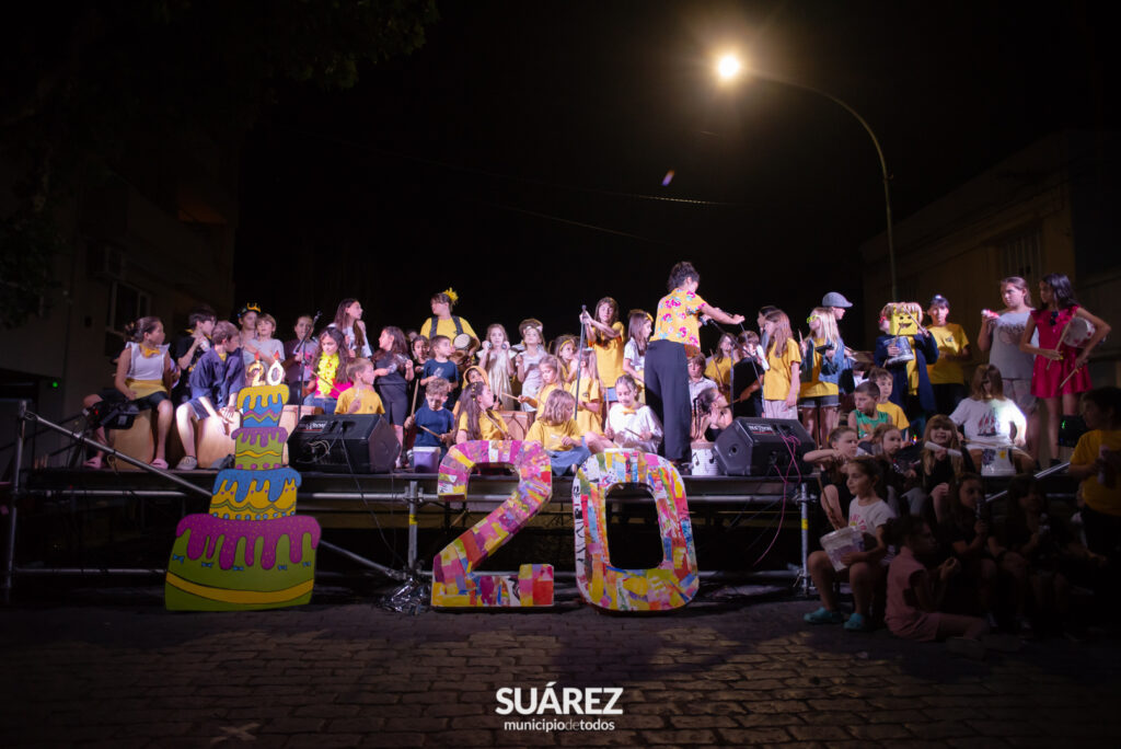 La Escuela Educación Artística N° 1 de Coronel Suárez celebró su 20° aniversario de la mejor manera: haciendo arte y compartiéndolo con la comunidad. Importante convocatoria de familias acompañó el cierre de año, que se desarrolló en el frente de la institución, donde se montó un escenario para dar lugar a diversas expresiones artísticas.