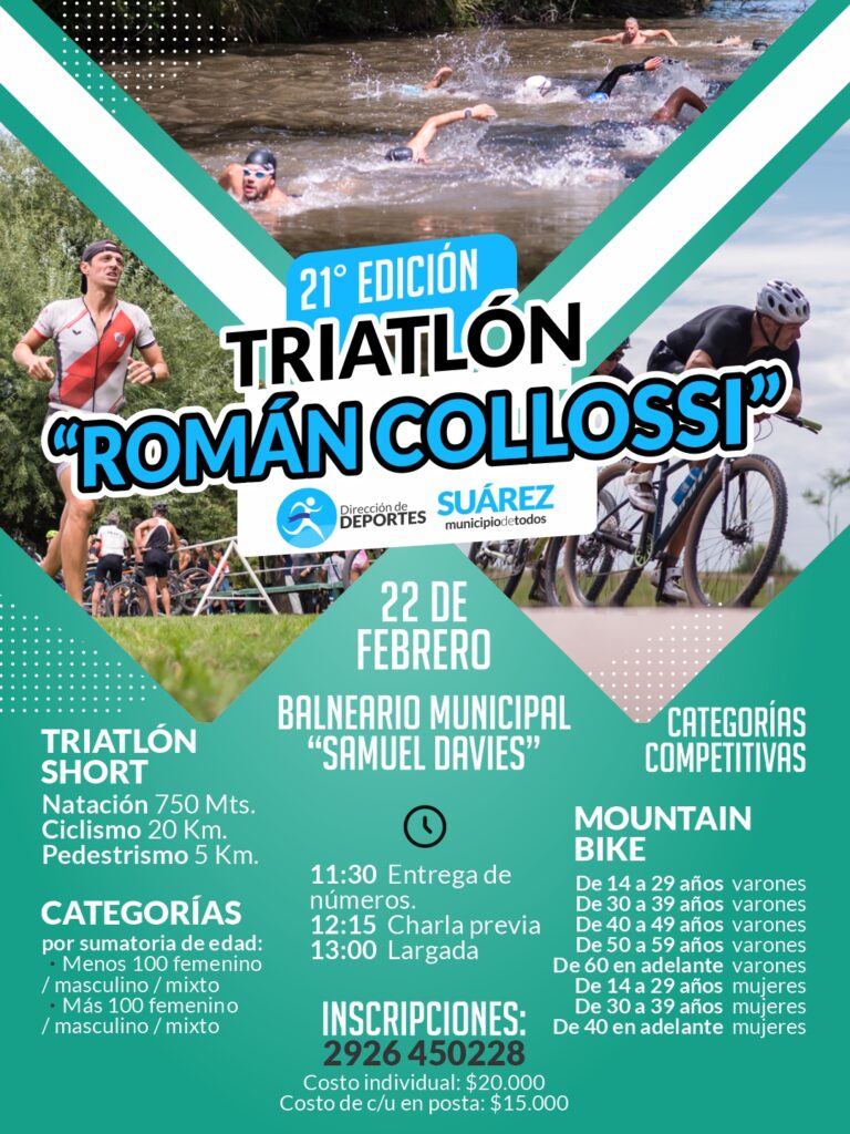 ¡Se viene la 21ª edición del Triatlón “Román Collossi” y ya podés empezar a prepararte! La Dirección de Deportes del Municipio de Coronel Suárez te invita a ser parte de una de las competencias más esperadas del verano, que se realizará el 22 de febrero en el Balneario Municipal “Samuel Davies”.