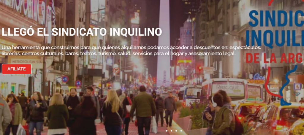 Además de la actividad política y social, Inquilinos Agrupados ofrece una plataforma llamada Comunidad Inquilina o Sindicato Inquilino, a través de la cual quienes alquilan pueden afiliarse para recibir beneficios —como descuentos en servicios— y acceso a asesoramiento legal personalizado.