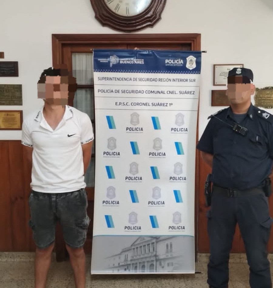 La Jefatura de Policía de Seguridad Comunal de Coronel Suárez informa que, con fecha 19 de enero de 2026, siendo aproximadamente las 19:00 horas, personal policial que se encontraba en el asiento de la Seccional Primera, procedió a hacer efectiva una orden de detención. La misma recayó sobre Alexander Nataniel Amillano, de 22 años de edad, no residente del distrito, domiciliado en el partido de Puan.