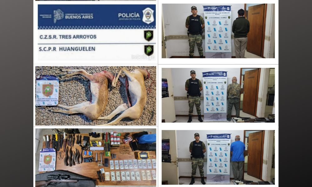 Personal del SubCPR Huanguelen en el marco de las distintas tareas preventivas llevadas adelante procedió a la interceptación de una Fiat Titano de color gris, en la cual circulaban tres masculinos procediendo a su identificación, constatando que en el interior del rodado se encontraba una carabina calibre .22 con mira colocada, asimismo prosiguiendo los efectivos con la inspección visual del rodado hallaron en la caja de carga de la pick up los dos reses recientemente faenada de antílopes.