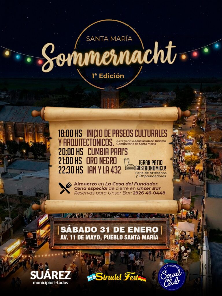 Este sábado 31 de enero, Santa María vivirá la primera edición de Sommernacht (Noche de Verano), una propuesta pensada para disfrutar en comunidad, organizada por la Delegación Municipal, junto a instituciones de Pueblo Santa María y emprendedores locales.