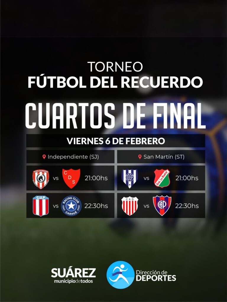 El Torneo Fútbol del Recuerdo entra en su etapa decisiva. Este viernes 6 de febrero se disputarán los cuartos de final en dos escenarios, con partidos que prometen emoción y grandes encuentros: