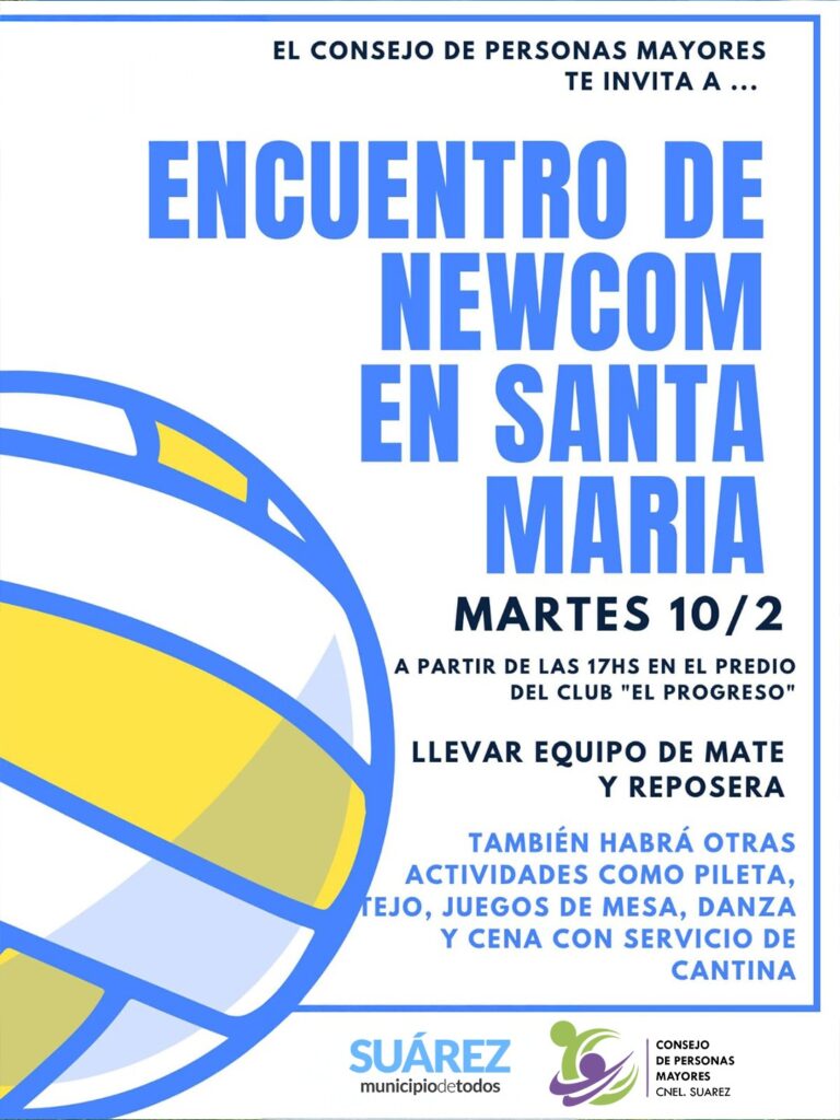 El Consejo de Personas Mayores invita a la comunidad a participar de un Encuentro de Newcom, una propuesta deportiva y recreativa que tendrá lugar el martes 10 de febrero, a partir de las 17 horas, en el predio del Club “El Progreso” de Santa María.