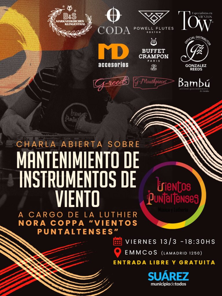 La charla se realizará el viernes 13 de marzo a las 18:30, en la sede de la Escuela Municipal de Música de Coronel Suárez, ubicada en Lamadrid 1250. Desde la organización destacaron que la actividad es abierta a toda la comunidad y con entrada libre y gratuita, por lo que se invita a participar a quienes tengan interés en el mundo de la música y el mantenimiento de instrumentos de viento.