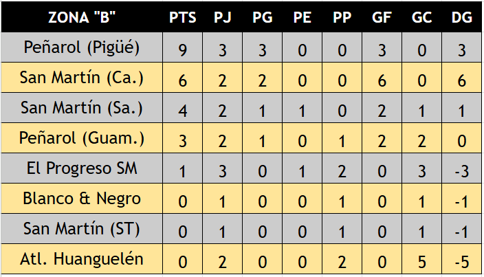 Libres: San Martín (Sa.), Peñarol (Pigüé), Blanco & Negro y El Progreso SM.