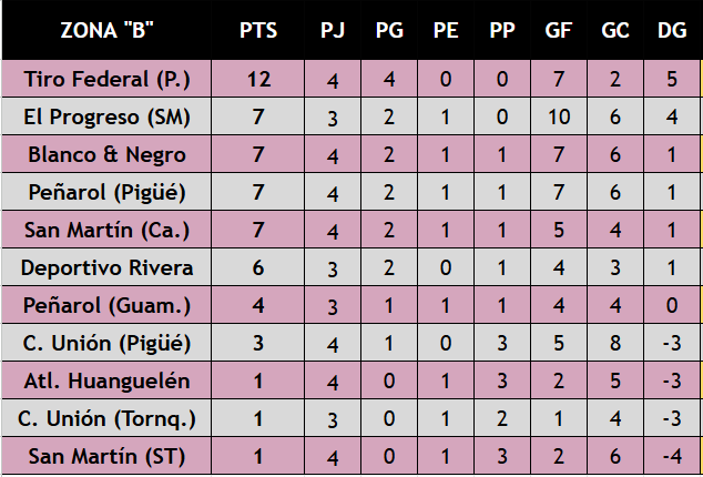 En la Zona “B”, Blanco y Negro no logró sumar en su visita a Tiro Federal de Puan, mientras que San Martín de Santa Trinidad tampoco pudo en su compromiso frente a San Martín de Carhué. En tanto, Atlético Huanguelén fue superado por Peñarol de Guaminí, y El Progreso de Santa María protagonizó un encuentro con muchos goles ante Unión de Pigüé, logrando quedarse con el resultado.