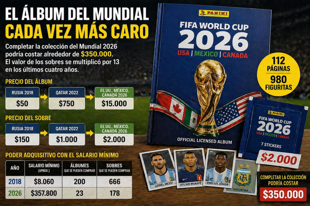 El regreso del clásico álbum de figuritas del Mundial, de la mano de Panini, llega con una novedad que poco tiene que ver con el fútbol: completar la colección rumbo a la Copa Mundial de la FIFA 2026 podría costar alrededor de $350.000.