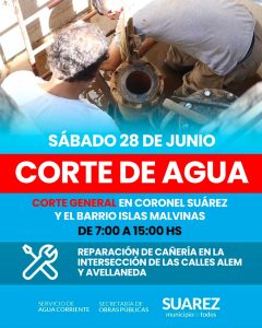 Atención: se anuncia un corte en el servicio de agua corriente en la ciudad y barrio Leer más... 27/06/2025