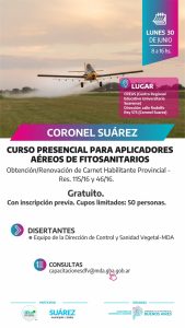 Inscripciones abiertas al curso presencial para aplicadores aéreos de fitosanitarios Leer más... 17/06/2025